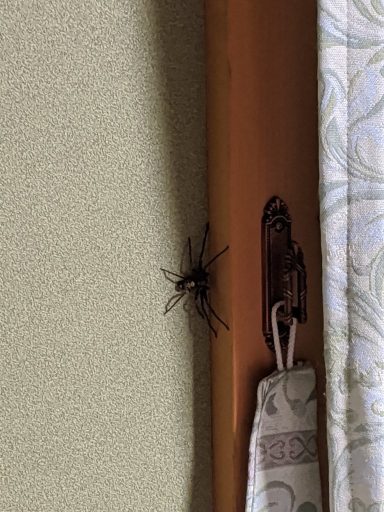 Its legspan measuring an easy 8~10cm, the 人喰い蜘蛛, or hitokuigumo (latin name: anthropophagos spiderum) is a curious species with an extremely limited habitat: the wall just next to my wife’s head while we’re watching TV in the evening.